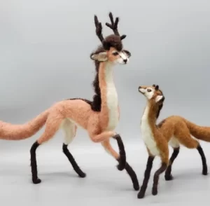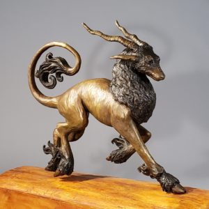 Liza also works with lost-wax bronze casting sculptures, with new pieces being cast at Artworks Foundry in Berkeley, CA. The most prominent bronze sculpture being ‘Momentum’ a leaping Kirin with antlers and spiraling fur tufts- this elegant beast is a limited run of 12 editions.