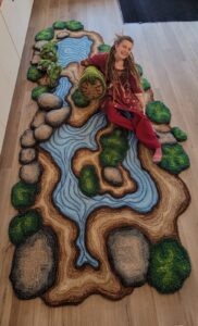Most known for life-size needle felted creations, Liza has been working with wool for over a decade, with a new focus on tufting wool; the art of rug making.